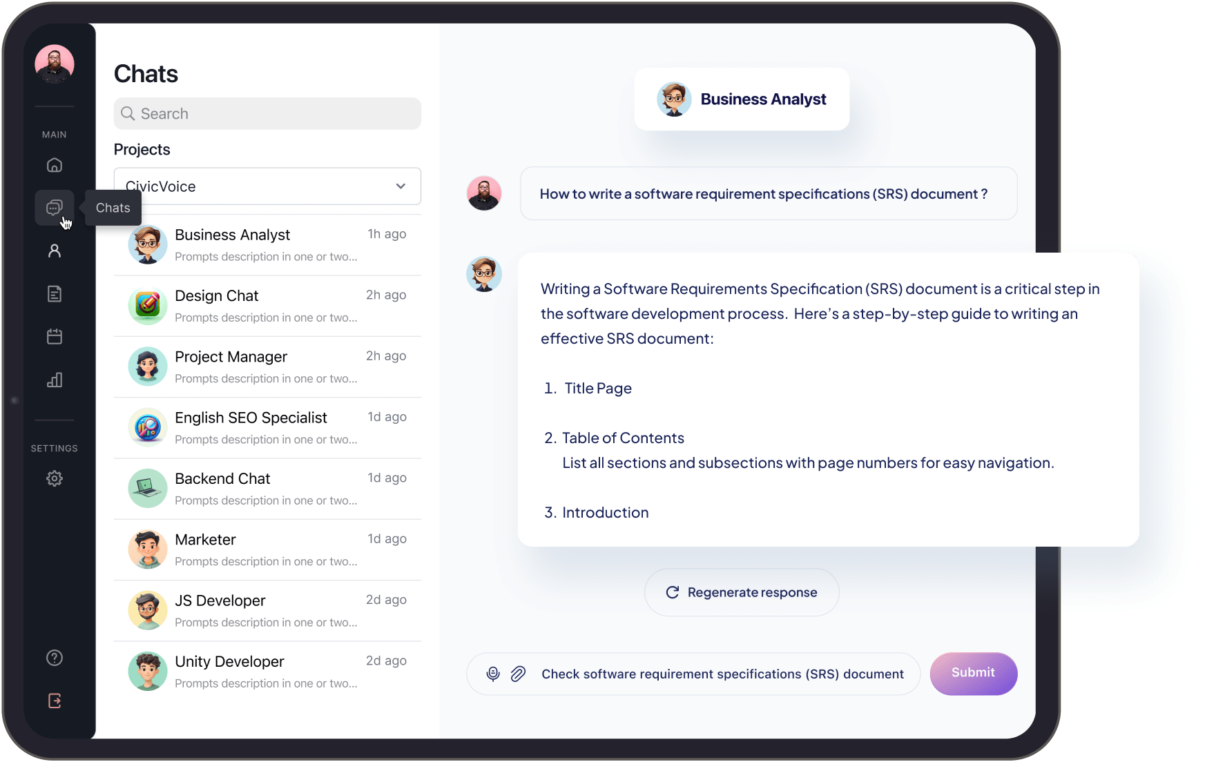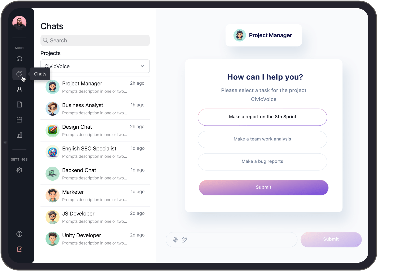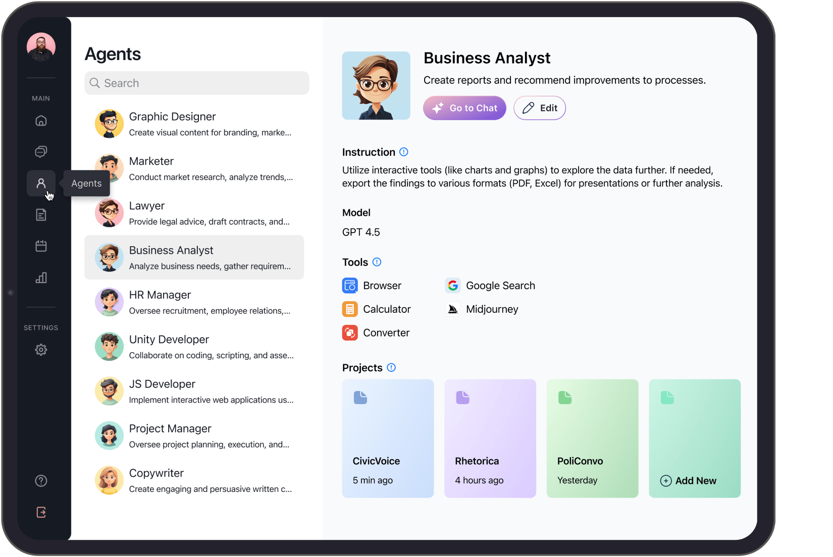 The American company came to us with the idea on the project that will be a network of AI agents making work with others easier. A few individuals at their company were using ChatGPT for things like writing documents, brainstorming, and upskilling. And our client was wondering: