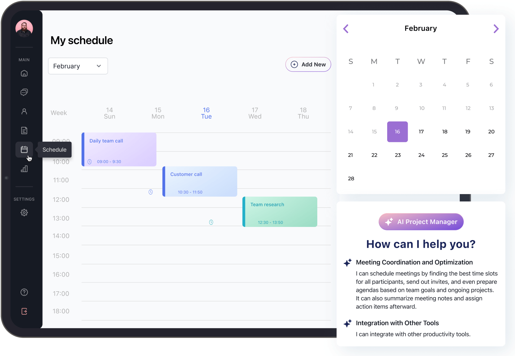 Each person in the company is assigned a personal assistant agent.
