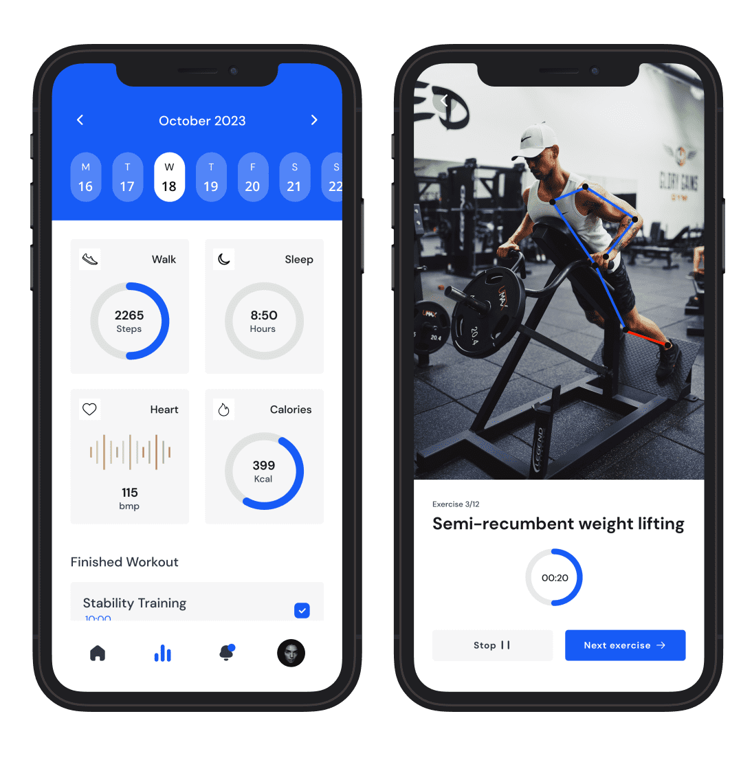 - Dynamic strength, cardio, and flexibility sessions that evolve with each milestone