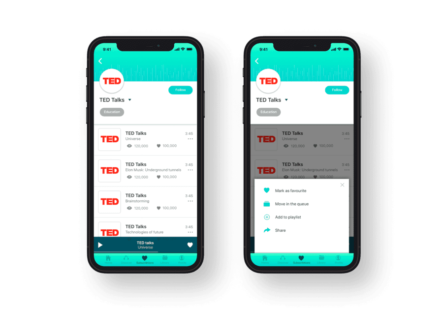 After some scope optimization, the solution fit a reasonable budget of the client and was developed and released as a fully functional audio streaming platform MVP with elements of the social network, freemium mode, and workspace for content creators. A highly customized audio player was implemented in the application.