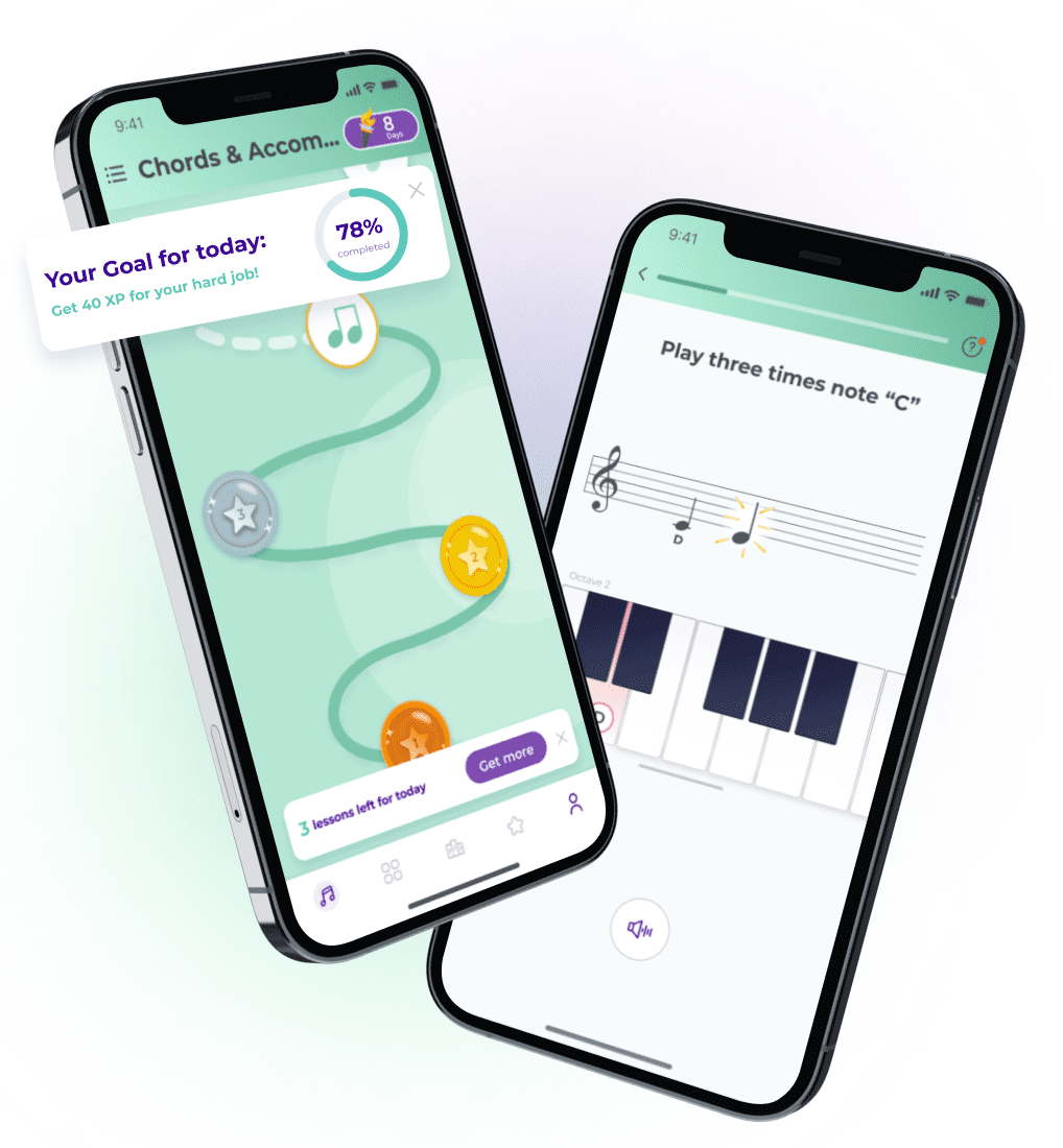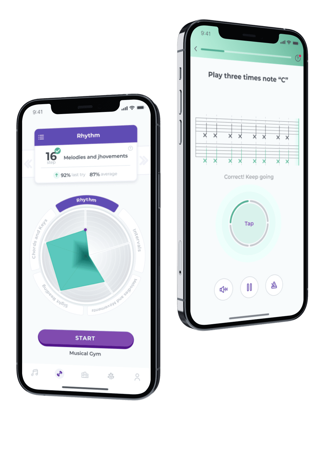 - 9 distinct exercise mechanics (ear training, rhythm, note ID, etc.) grouped into “units” that climb from easy to advanced