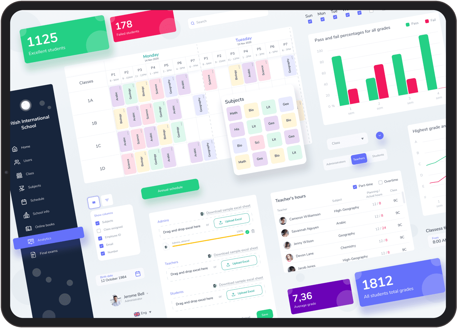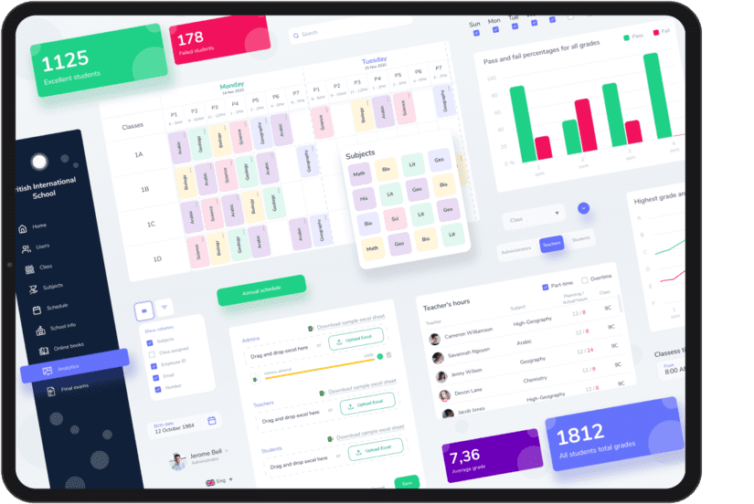 We have worked on the project from the very beginning to the end, including such stages of the bespoke web app development lifecycle as initial research, design, and so on. As a result, we have provided the customer with the software with unique features, Automatic scheduling, Electronic school journal, Exams management. We will have a closer look at each of the main features further.