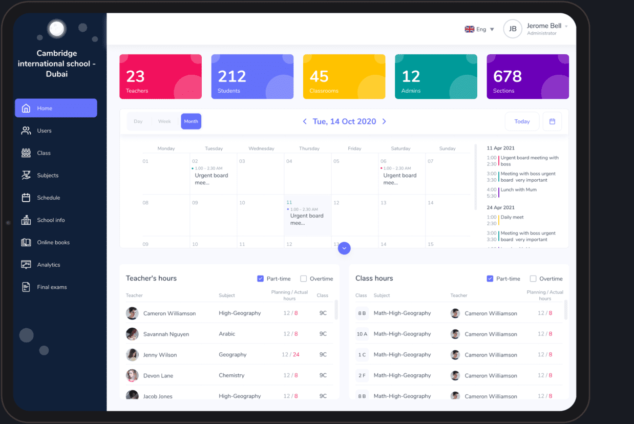 School management software is a comprehensive solution for digitalizing school management, providing full control of the educational process, including all the roles involved. The software includes such functionality as curriculum board, lesson schedule, logbook, and so on.