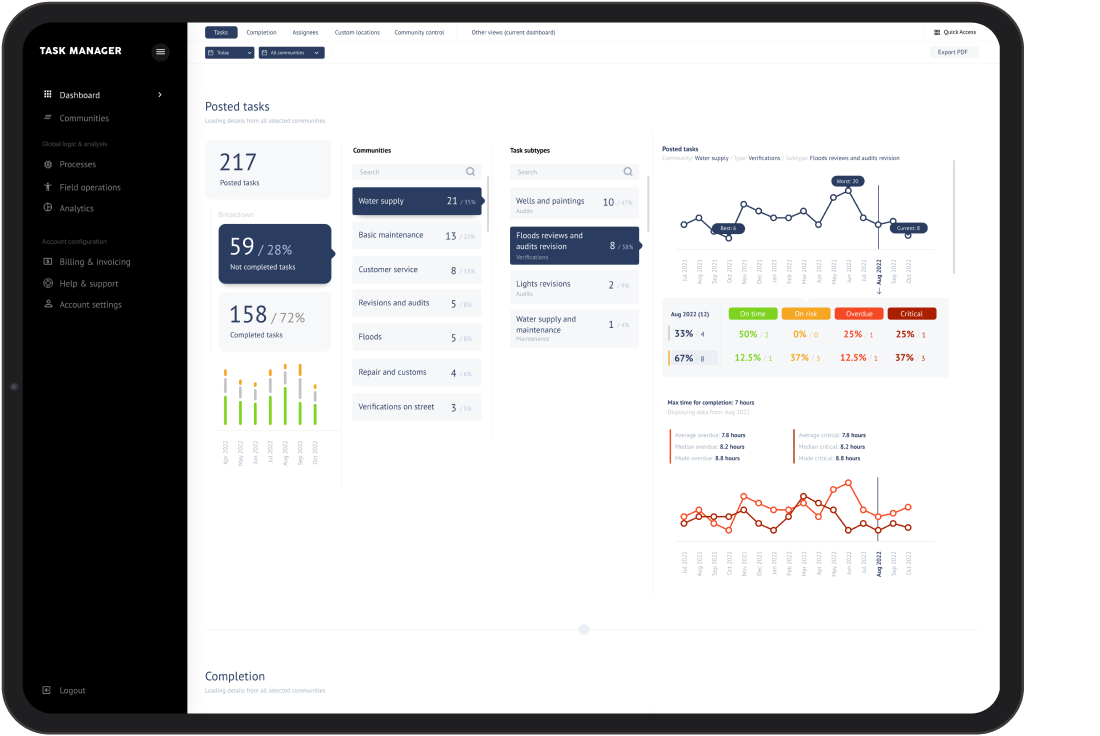 The timer function has also become a challenge for us. When creating a task, a particular duration was set for it. As soon as it expired, the status of the task would change under certain conditions. Task status was displayed in reports, the map, the dashboard, and the task info.